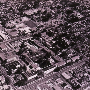 Below are examples of aerial photos I hope to someday take for comparison. I tried getting GoogleEarth-generated shots and they just don't look good at all. The photo on the left is San Jose take looking southeast from Santa Clara in 1940. The one on the right is San Jose State University in 1959. | ||
