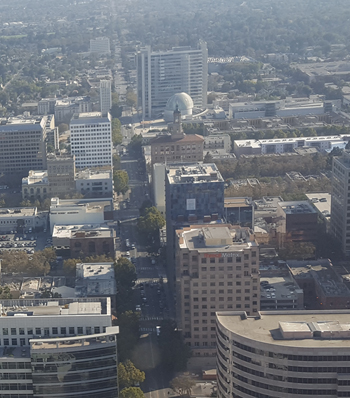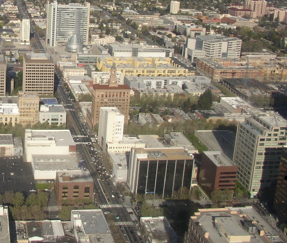 (2008) Looking eastward on Santa Clara Street, with the Bank of America Building near the center, City Hall beyond it. (2016) A different angle. You can see a lot of development in the foreground. |