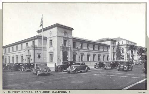 The post office on North First Street the 1930s and in 2007. The photo on the left appeared on a postcard. Did you know the First Street Post Office cost $308,000 in 1934? (SJHM) | |