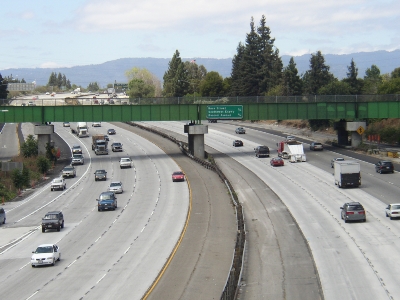Would photos of San Jose be complete without at least one photo of a freeway? The photo on the left was taken in 1970, when 280 was still being built. It's of the railroad crossing west of Bird Avenue. I assume it was taken from the Bird Avenue overcrossing, which is where I got the present-day shot on the right. (SJHD) |