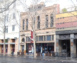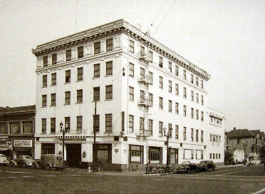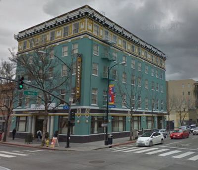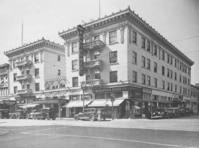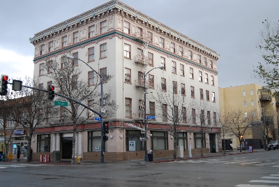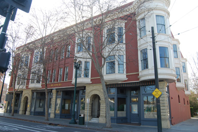All the ornamentation is gone, but it is still the same building. At the turn of the 20th century, it housed a fine French restaurant called the La Molle House. In 2007 it is the Aconda Residence Hotel for low-income renters above, and several eateries, including a Starbucks, on the street level. News in 2007 was the building was purchased by a firm that was evicting the tenants in order to renovate the building for office space. (SJHD) | |