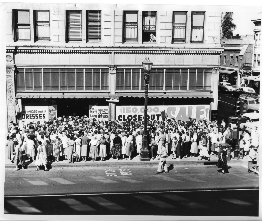 In the 1940s the building on the left at the corner of St. James and Terraine housed the Levi-Straus Company. Today it is part of the Santa Clara County Superior Court system (Criminal, Dependency and Drug Treatment). (SJHM) | |