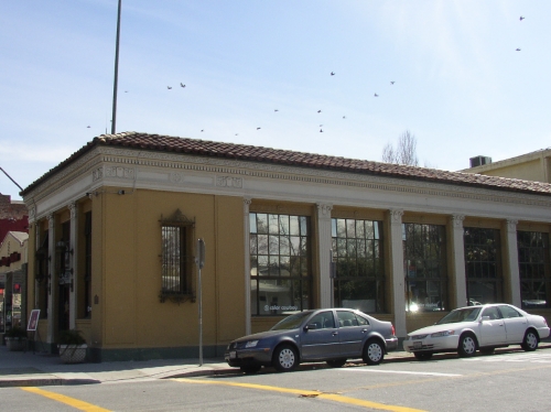 This was originally an office of the Bank of Italy, later Bank of America, on the corner of Hester Avenue and The Alameda. It was a realtor's office for many years, then a series of coffee houses, and is now a hair salon. [Thanks to Marilyn Wright Kieffer to brought to my attention that I'd incorrectly called it the "Bank of Giannin" after its founder.] | |