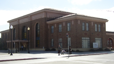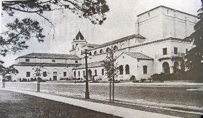 The Civic Auditorium taken from the corner of Market and San Carlos, looking west. The lightrail line is new and the palms are gone, but the building has not changed much. | |