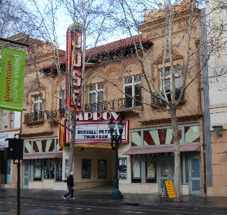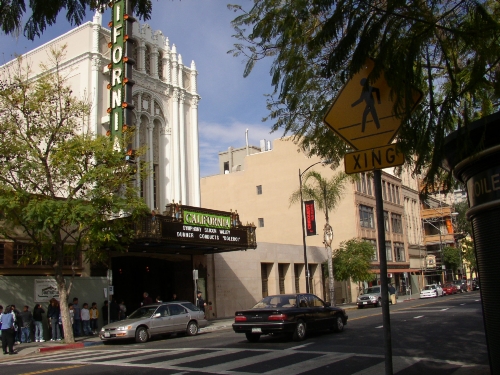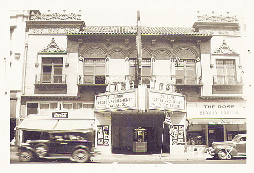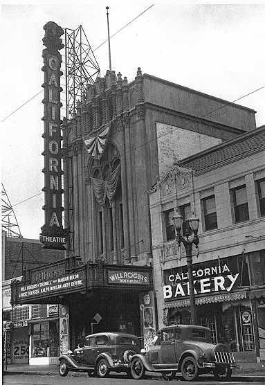 The California Theater still stands! I thought the photo on the left, judging from the cars, was from 1915-1920. Boy, was a wrong. Hugo Fuchs, a sharp-eyed visitor to the site let me know that "the playbill reads "Billie Dove in An Affair of the Follies" which was released in 1927. On the other hand, the name Doris Eaton is on the board, and her closest movie to that time was "Taking the Count" which might be what is on the billing placing it at 1928. I'd best guess the picture as 1928." I just love getting email like that! (SJHM) | |