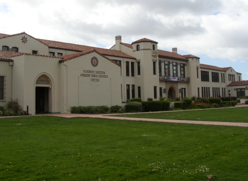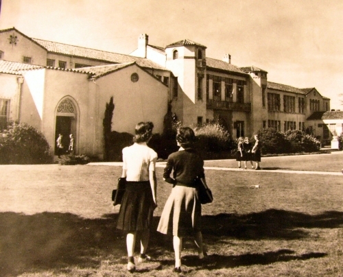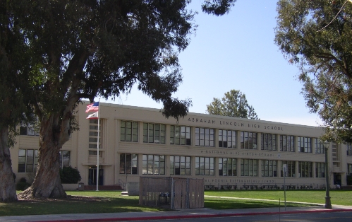 Lincoln High School then and now. The photo on the left says "SJ 73 Laws" on it, but I'm told that was a designation by the photographer, Casper Law, that it was #73 in a series of photos. The actual date of the photo is estimated at late 1944 or early 1945 (Thank you, Tom Layton.) | |