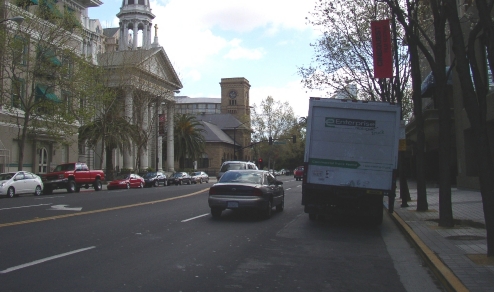 Post Street runs between Market Street and First Street. The shot on the left is fairly recent -- around 1980 (correct me if I'm wrong). The one on the right was taken in 2007. | |