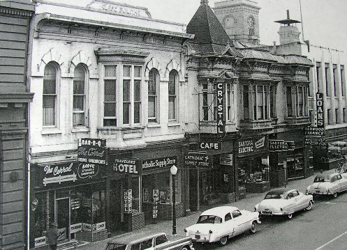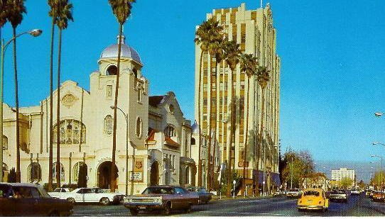 Okay, the Medico-Dental building is obviously still there but the First United Methodist Church is history. Long-time local resident Allan Furtado emailed to inform me that the church fell due to a fire in the 70s. Later Gary Singh wrote to tell me it was in the early 1990s that the church burned. "Hundreds of us were out there in the street watching that as it happened. And drinking beer .... I distinctly remember the old ladies from the church crying as it was burning down." The photos on the left was dated 1941. The middle photo is from a postcard dated 1970s courtesy of Sandy Ragsdale. |