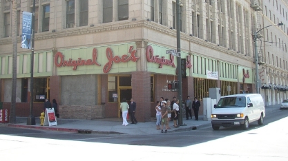 At the corner of First Street and San Carlos is a popular downtown restaurant that has survived the decades - Original Joe's (est. 1956). Note the change in light poles. (ROTP) | |