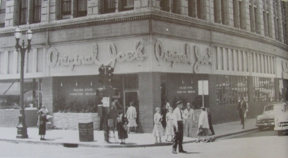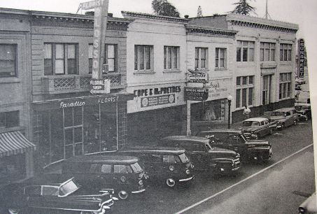 On the left is the store that was on the corner of First and San Carlos BEFORE Original Joe's. It was an upsale women's clothing store called Appleton & Co. and opened at this location in 1925 (it out-grew two prior locations in downtown San Jose). The photo on the right is a copy of one currently on display in the lower floor of the Hotel St. Claire, near the fitness center. This information, the photos and a photo of a newspaper clipping reporting the 1925 opening day were provided by Derek Appleton, the great grandson of Alfred Appleton. |
