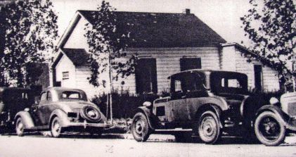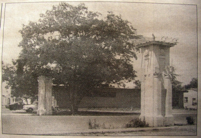The tree is grown a lot, and the pillars are gone, but it's the same building at the intersection of Tillman and Park. The original photo on the left was taken in the 1960s and appeared in the spring of 2008 in The RoseGarden weekly newspaper, which credited the Fox Family. | |