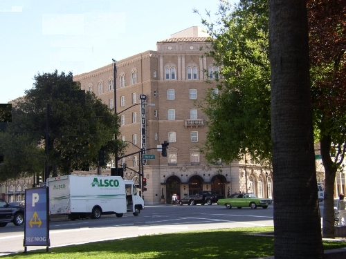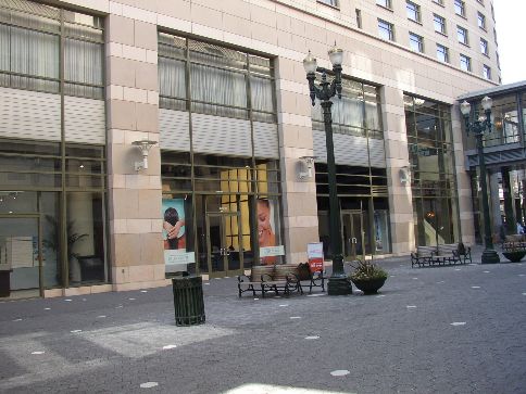 The Hotel Montgomery was originally built in 1911 on the corner of First and San Antonio. It fell on hard times and was vacant for many years. Preservationist insisted it be moved instead of destroyed to make room for the Fairmont Hotel annex. It was successfully moved to its current location 186 feet south, extensively renovated, and reopened in 2004. Bravo! [The light rail now runs along Market and obscures much of this lovely old building, but -- hey -- it survived! | |
