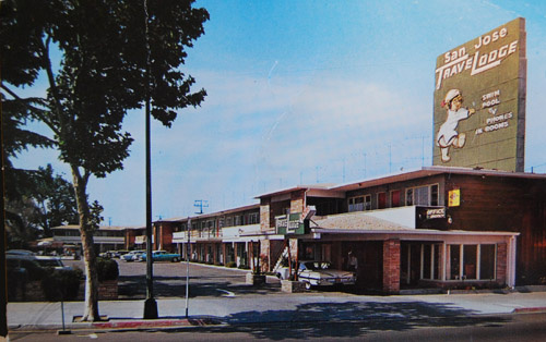 The Motel 6 at 1041 The Alameda was a Travel Lodge that merited a postcard back in the 1950s. I picked up the postcard at an antique store in San Jose. The building got a facelift in 2007-2008. | |