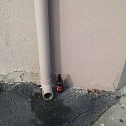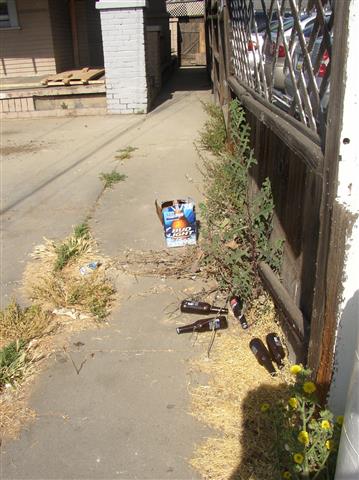 Bottles sitting upright in a gutter. | Cups left in the gutter. | More empty cups in the gutter. | ||