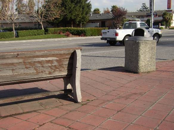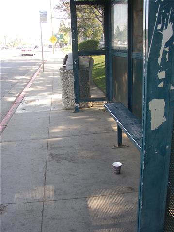 Every bus in Santa Clara County has a trash can ....right next to the driver. |