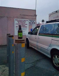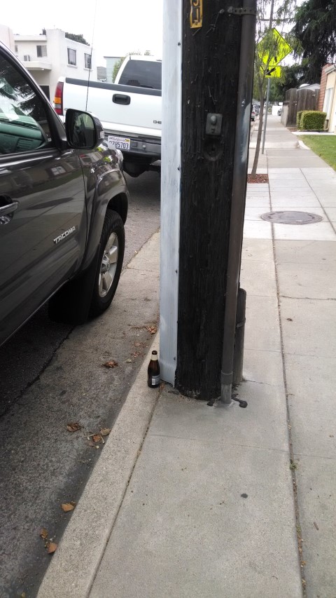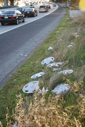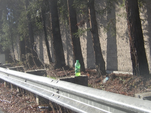 Must have been a spectacular accident - but why not take the hubcaps? | Empty bottle on Highway 17, perhaps left after an accident? | |||