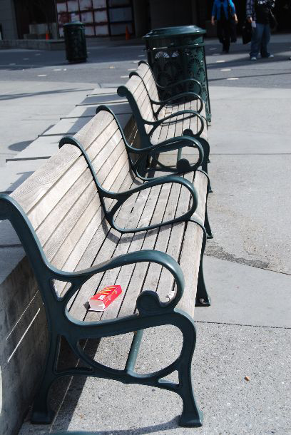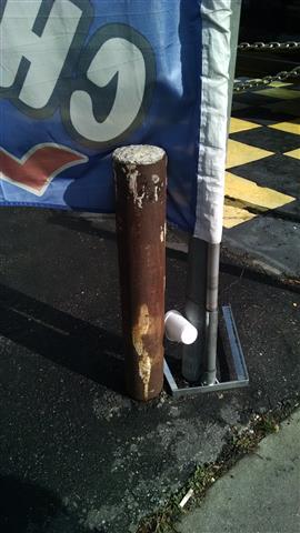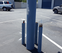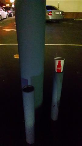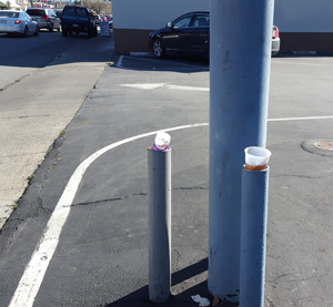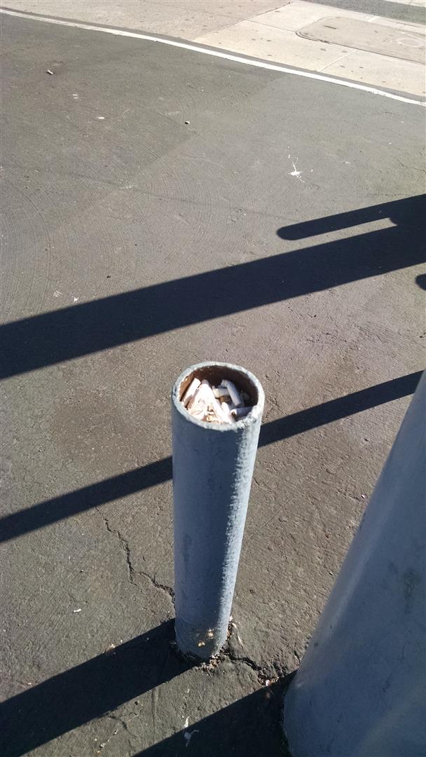 Top and left and below, the same posts, different days. The open ends of these posts are regularly used as ashtrays and trash receptacles. |
