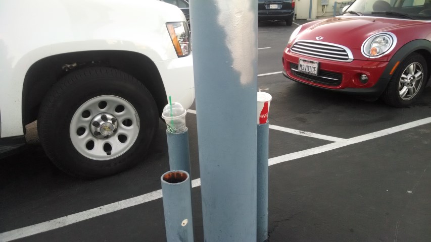 Don't posts seem like the perfect place to park your empty cup? |