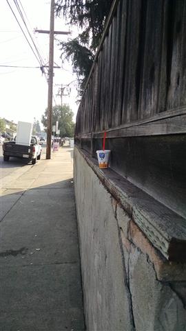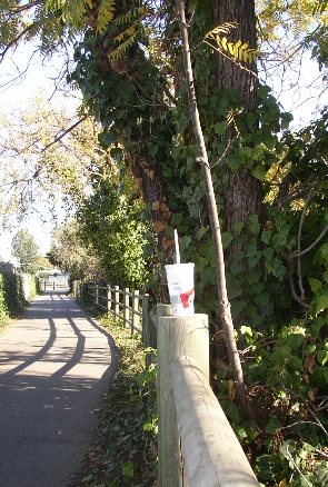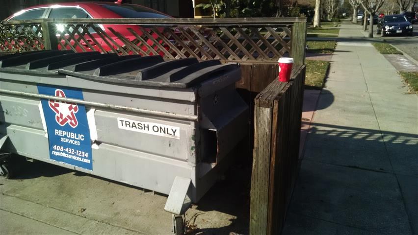 A cup on a fence post. And I was standing in front of the trash can when I took the photo. |
