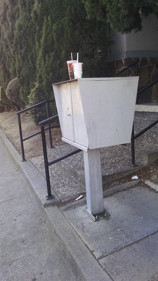 Cups left on a utility box |