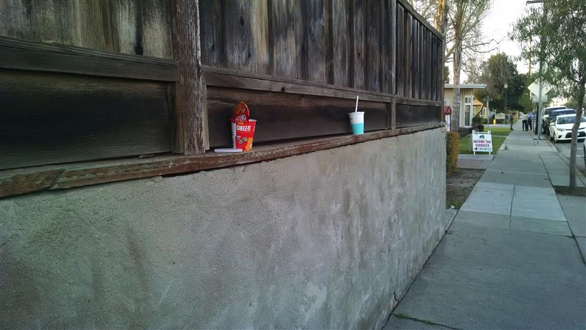Cups on a wall | Same wall from the other direction | Same wall, different day | ||