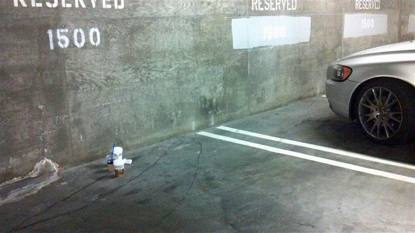 Deep in a parking garage | Cup in a parking lot |