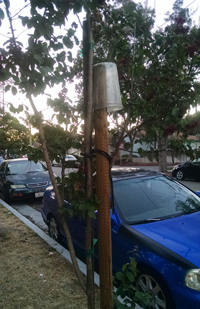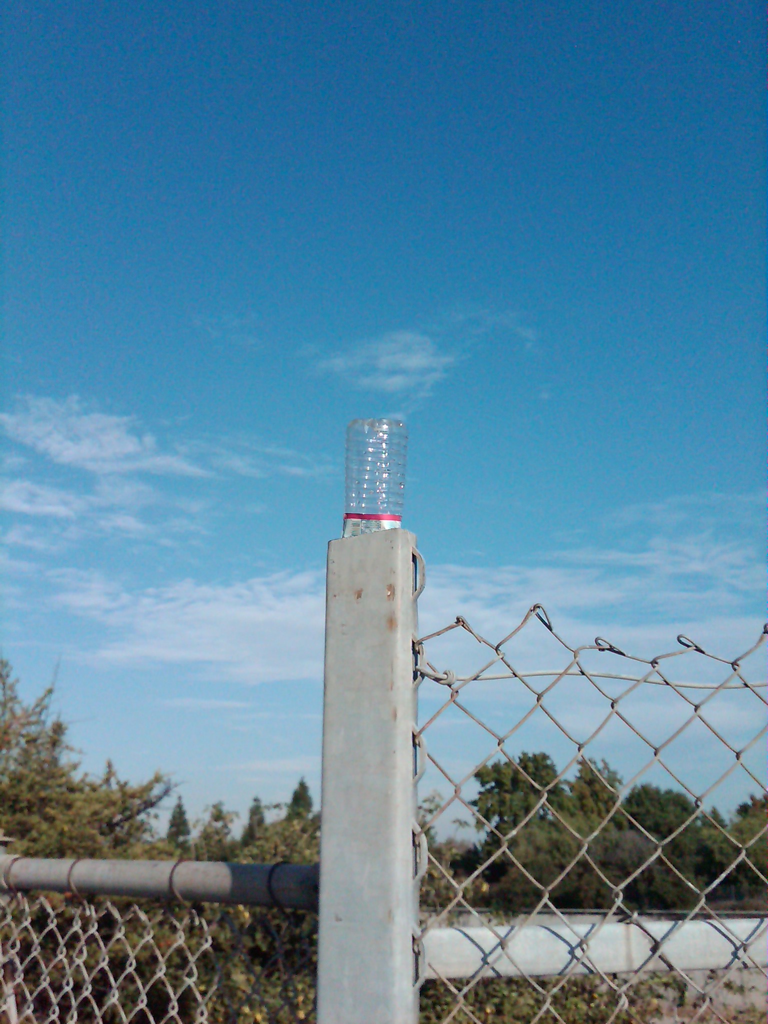 Cups on tree supports. | Same posts, different day.... | A plastic water bottle stuck upside down in the top of a chain link fence pole. | ||