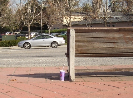 View #1 -- see the cup? | View #2 -- see the trash can? | More cups that couldn't make it to the trash can... | ||