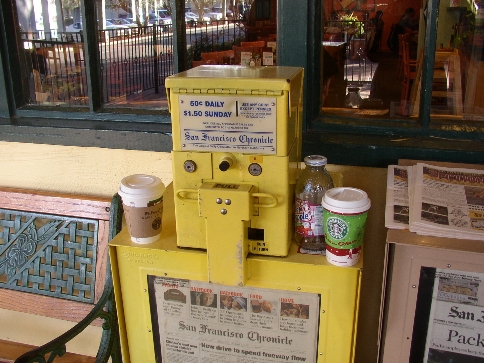 Yet another cup left on a newspaper stand. | ||