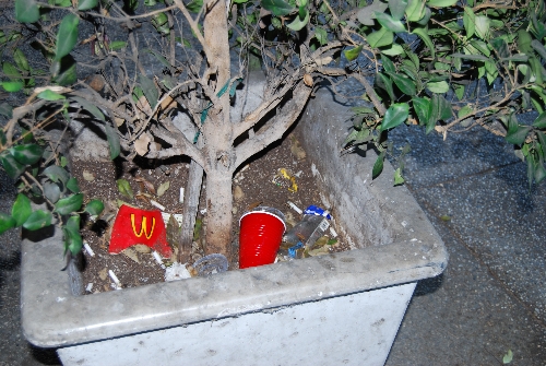 Where there is a planter box, there will be trash! |